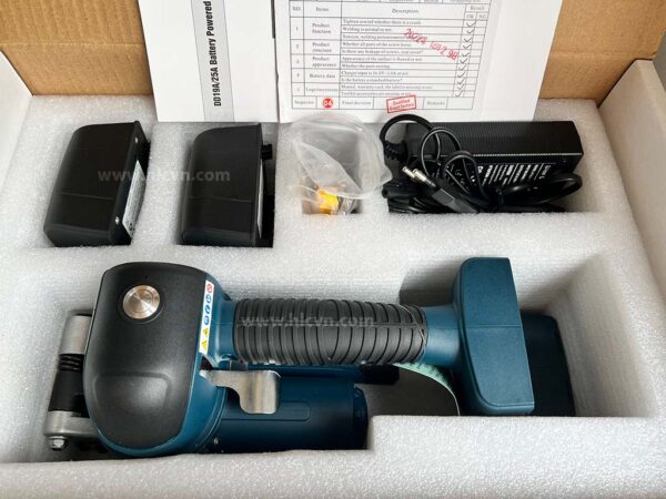 - Tuổi thọ pin của máy cao 2000 lần sạc pin, thời gian sạch chỉ khoảng 30 phút cho 1000 lần đóng đai. Tốc độ siết đai từ 0-120mm/s, chỉ 1,3 giây cho một chu trình đóng đai, hiệu quả làm việc cao.
